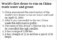 - China announced the construction of the world's first drone to run on water and land on April 15, 2019.